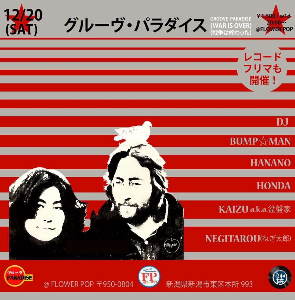12/20(Sat)グルーヴパラダイスGROOVE PARADISE (WAR IS OVER)