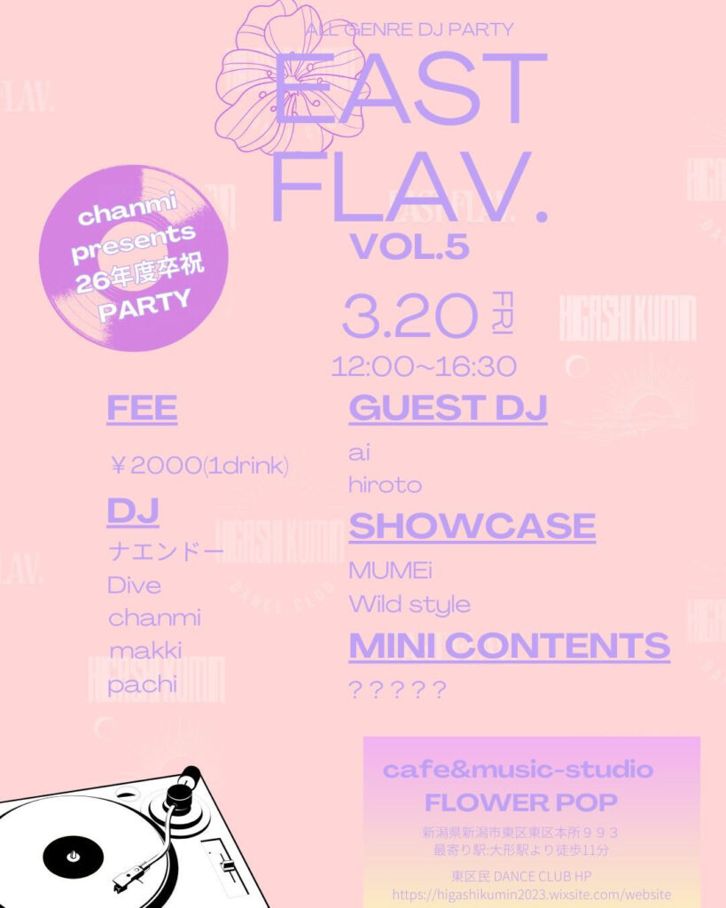 EAST FLAV. vol.5 2026.3.20(fri)OPEN 12:00 CLOSE 16:30
